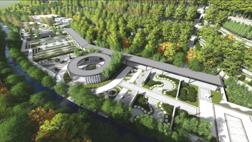 眉山市,一个因东坡而得名的城市。“明月”成为眉山文化的象征。眉山项目设计总纲为“中国三苏文化生命纪念园”。力争把项目打造成“三苏人家,千年东坡”的梦里水乡。在整体设计上,以生命为主题,融合眉山特色文化,展示生命美好。