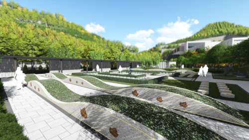 同样,我们把阜阳市颍上墓园项目成为一场肃穆与温情相融合的纪念场所,人们行走在曲折的长廊中,体会生命的况味;嘉善县墓园项目意在打造“自然的山、精美的石、古拙的树、凝练的园”为特色的清幽园林。精心雕琢的亭台轩榭为逝者提供可遮风挡雨的安息之所,也给来祭奠逝者的人们提供生死对话和思考的空间。